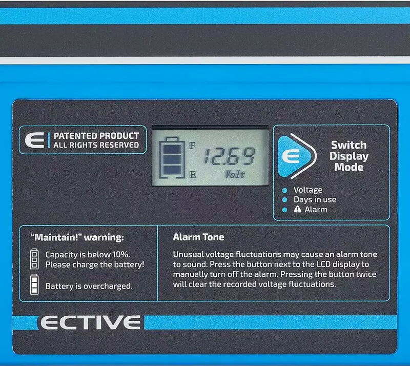 Одной из сильных сторон батареи ECTIVE DC-S является встроенная интерактивная информационная система ECTIVE, сокращенно EIS. Наиболее важную информацию о батарее можно прочитать на практичном дисплее, например, уровень заряда или текущее напряжение. При возникновении проблем, например, нетипичных колебаний напряжения, EIS предупреждает об этом звуковым сигналом и дополнительным сообщением на дисплее. Кроме того, интеллектуальная информационная система показывает, как долго в днях использовался аккумулятор.