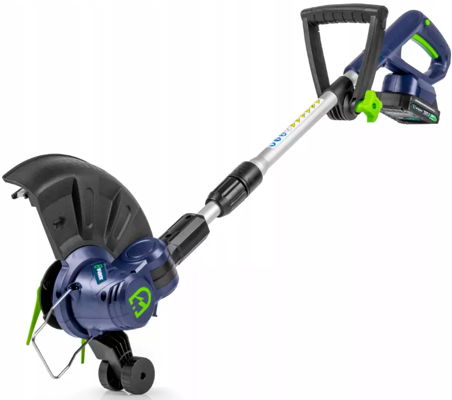 Питание приводного блока осуществляется от мощной батареи напряжением 20 В, что значительно увеличивает мобильность и возможности данного инструмента. Благодаря тихой работе двигателя и отсутствию запутанных кабелей вы можете легко ухаживать за своим газоном.