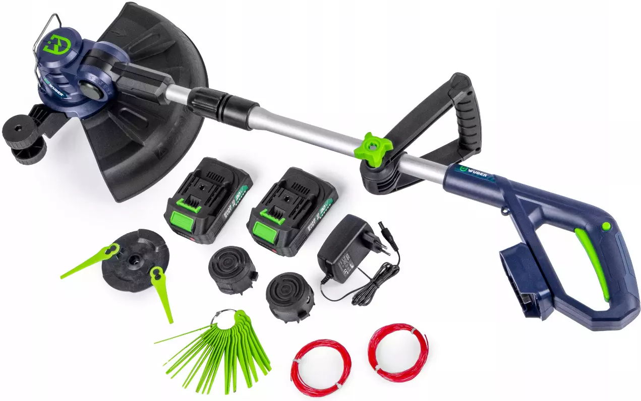 ✅ Обширная комплектация - в комплект триммера входят три головки, леска, нейлоновые лезвия, зарядное устройство, а также два аккумулятора для обеспечения долгой и эффективной работы.