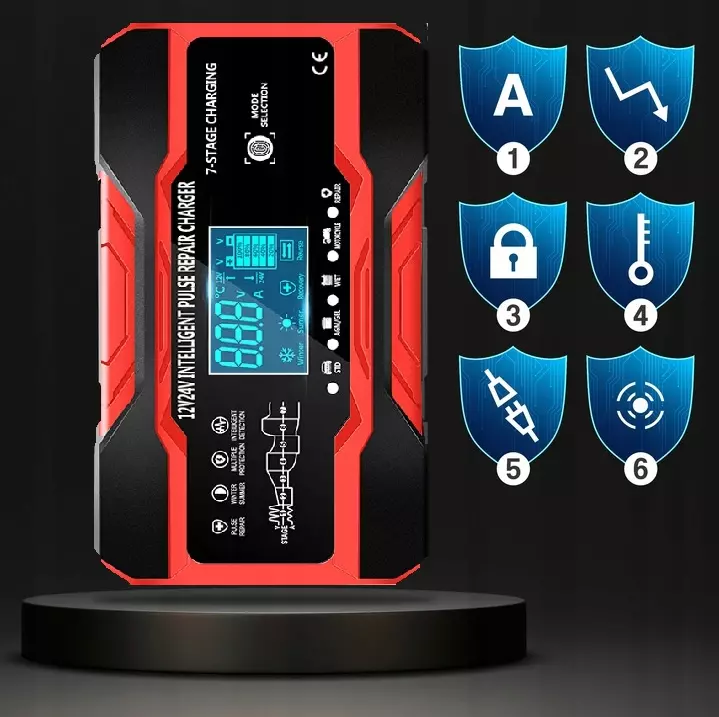 Зарядное устройство оснащено интеллектуальным микропроцессором, который отключает питание в случае возникновения нежелательных ситуаций, которые могут привести к опасности и угрозе здоровью и жизни.