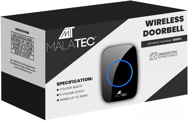 Беспроводной дверной звонок Malatec 300м 110дБ Чёрный (Польша)