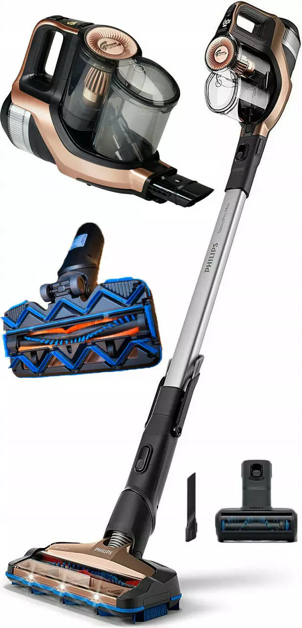 SpeedPro Max гибок и прост в маневрировании. Контейнер для пыли расположен вверху, что позволяет уменьшить угол наклона. Его даже можно положить на пол и убрать даже под низкой мебелью.