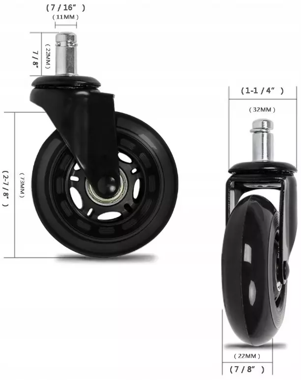 Ролики на резиновых подшипниках для офисных стульев и кресел - отличная альтернатива дешевым пластиковым роликам. Среди их многочисленных преимуществ наиболее важными являются: