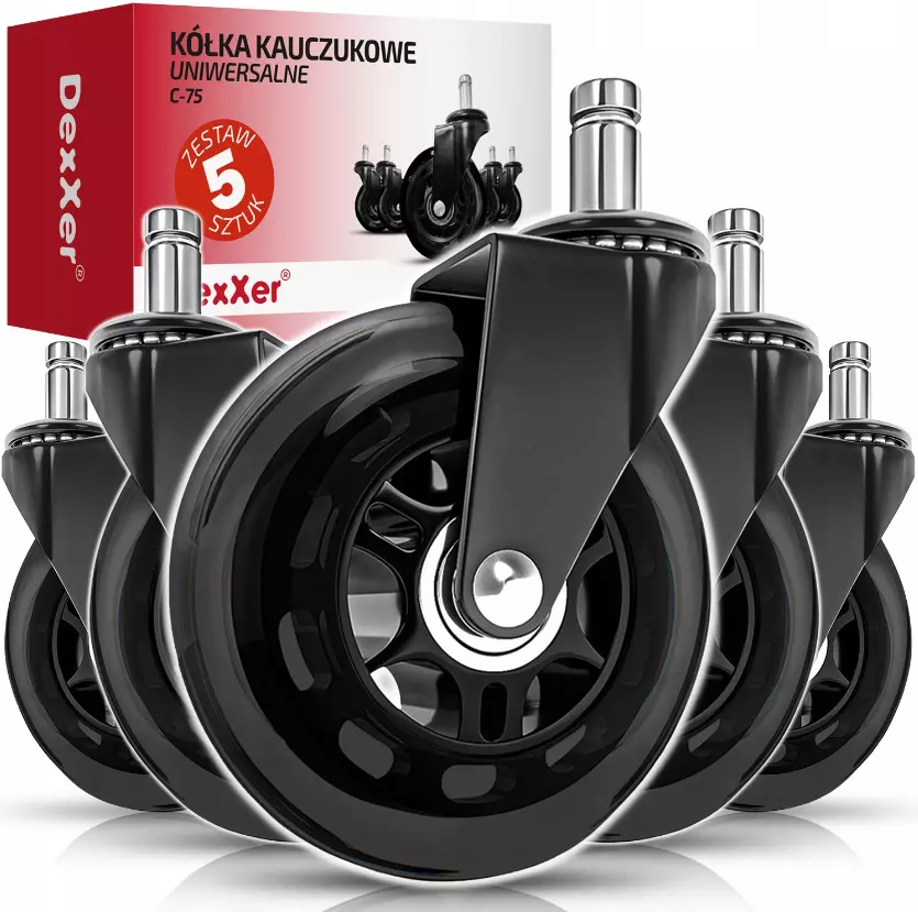 Прочные резиновые ролики подходят для любого типа поверхности, как дома, так и в офисе. Благодаря резиновому покрытию они не царапают панели или дерево. Подшипники гарантируют плавный ход даже по коврам.