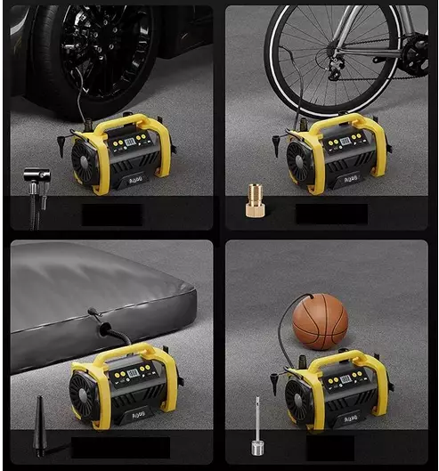 - ✅ Широкое применение: компрессоры 12В/230В используются для накачивания шин, матрасов, лодок, бассейнов и для различных бытовых задач,
