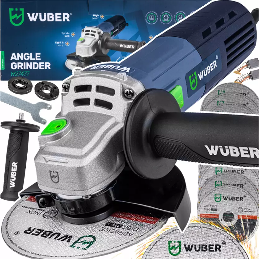 Болгарка (угловая шлифмашина) Wuber 1600Вт 125мм + набор 10 дисков 125мм (Польша)