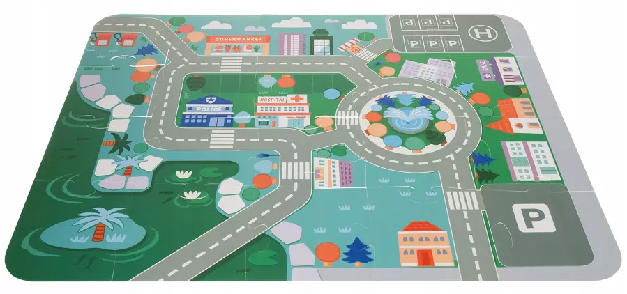 Набор из 20 пазлов, имитирующих городские улицы, послужит отличным ковриком для кубиков.