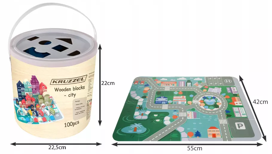 ДОЛГОВЕЧНОСТЬ - давно известно, что деревянные игрушки - это игрушки, которые могут развлекать поколения в неповрежденном состоянии. Деревянный конструктор Kruzzel City долговечный — так что можно не бояться, как в случае с пластиковыми игрушками, что поврежденный элемент случайно поранит ребенка.