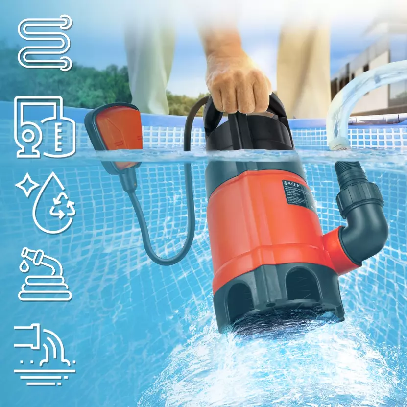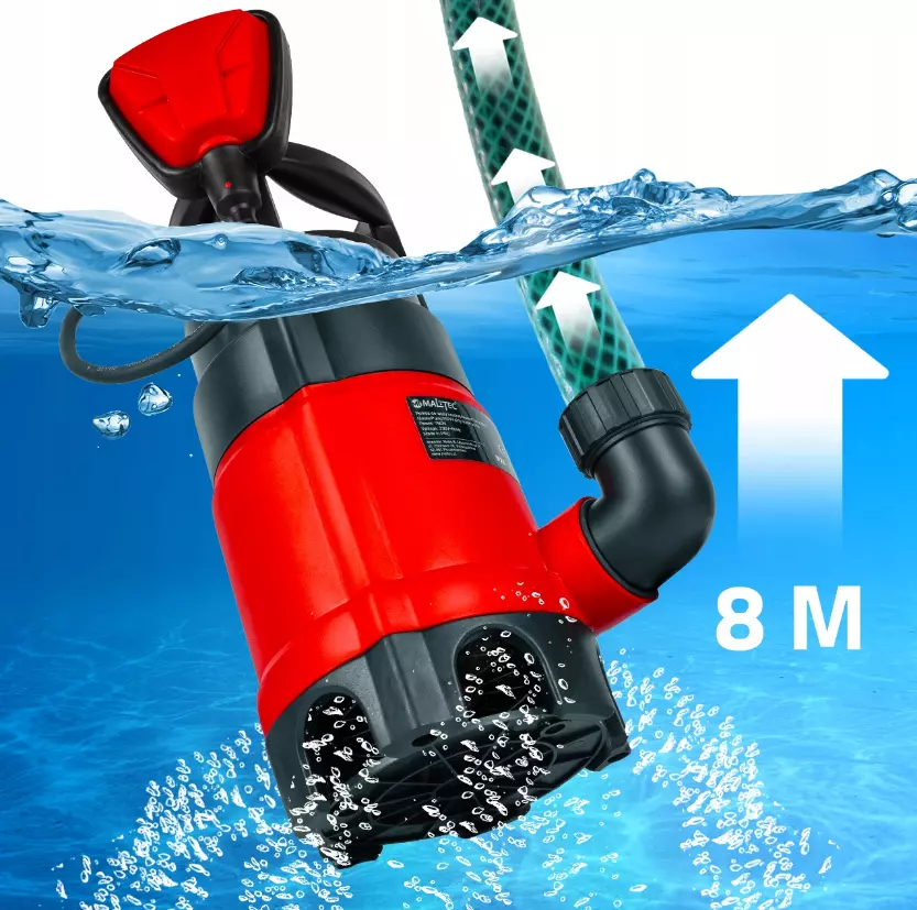 ◾ КОМПАКТНЫЙ ◾ МОЩНЫЙ 750 ВТ ◾ 12500 Л/Ч ◾ МАКС. ДАВЛЕНИЕ 0,8 БАР ◾ КАБЕЛЬ 10 М ◾ УНИВЕРСАЛЬНАЯ ТРУБА ◾ ПОПЛАВКОВЫЙ ВЫКЛЮЧАТЕЛЬ◾ ТЯГА ДО 7 МЕТРОВ ◾