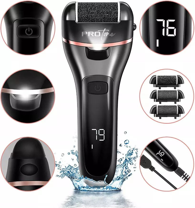 Получите шелковистую гладкую кожу за несколько мгновений без особых усилий. Электрическая пилочка для ног имеет вращающиеся головки, покрытые мелкими кристаллами, которые мягко и прочно удаляют омертвевшую, мозолистую кожу. Каждая головка предназначена для многоразового использования и имеет разную степень зернистости! Это позволяет выбрать головку с подходящей для ваших пяток силой абразивности.