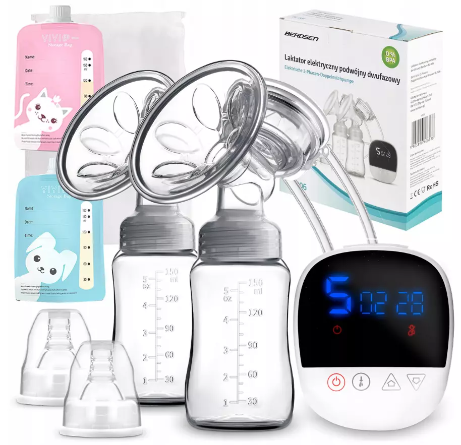 МОЛОКООТСОС BERDSEN ДВОЙНОЙ ДВУХФАЗНЫЙ ЭЛЕКТРИЧЕСКИЙ + ПАКЕТЫ ДЛЯ ХРАНЕНИЯ БЕСПЛАТНО