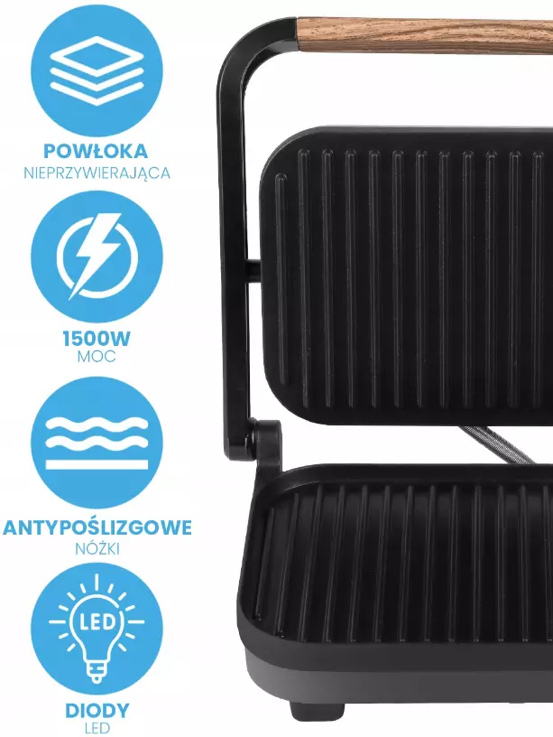 - МОЩНОСТЬ 1500 Вт - обеспечивает быстрый нагрев и эффективное приготовление на гриле, позволяя готовить разнообразные блюда за короткий промежуток времени