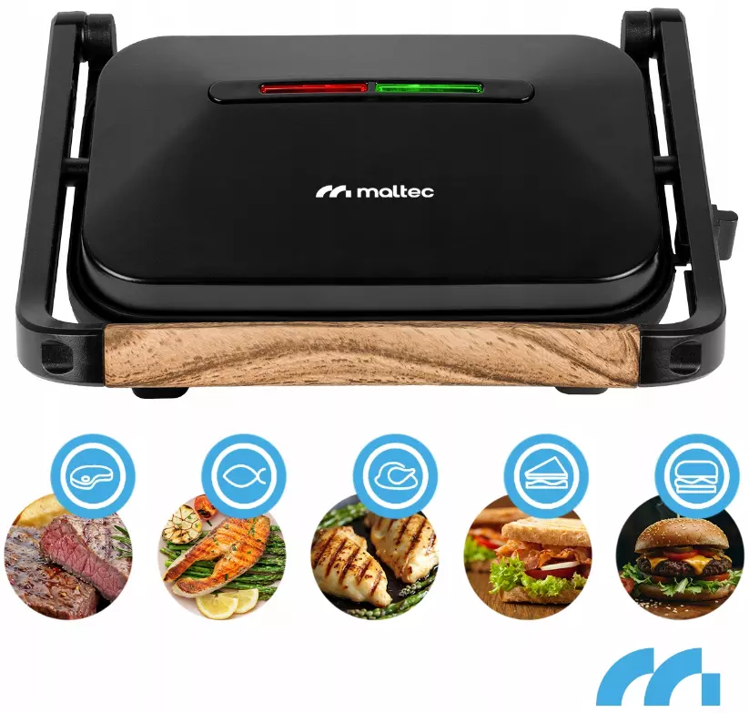 К вам пришли друзья, и вы хотите угостить их быстрой и полезной закуской? Или вы просто мечтаете о бургере на гриле или свиной шейке посреди зимы? Все это достижимо, причем проще, чем вы думаете. Многофункциональный электрический гриль MalTec поможет вам удовлетворить любое из этих желаний. Прибор поставляется с рифлеными вставками.