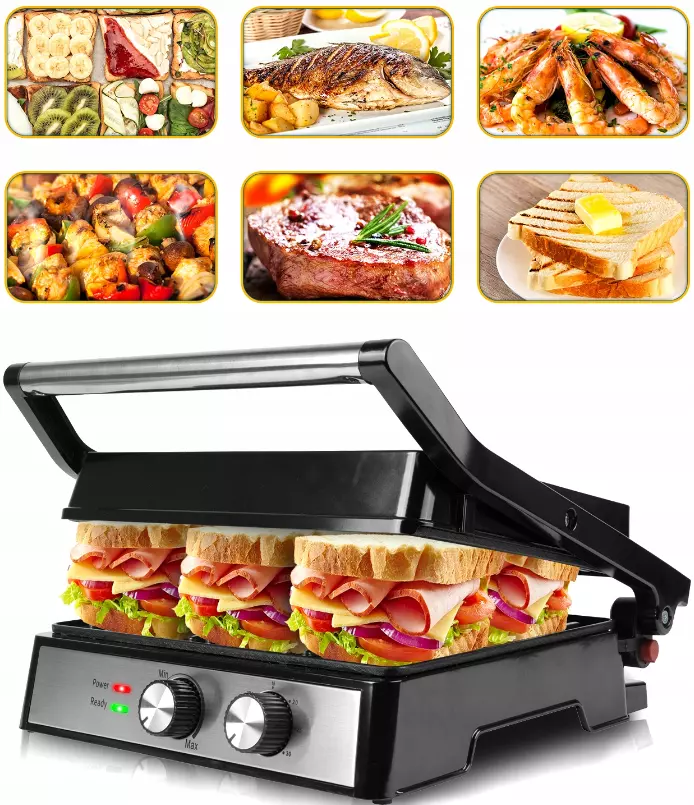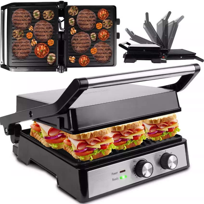 ЭЛЕКТРИЧЕСКИЙ ГРИЛЬ РАСКЛАДНОЙ ТОСТЕР ПАНИНИ СЭНДВИЧ-МЕЙКЕР БОЛЬШОЙ 2500ВТ