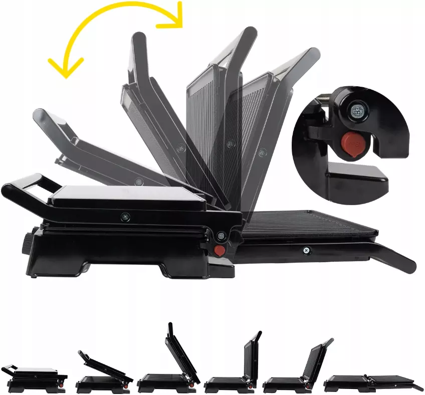 До 3 положений гриля: настольный гриль (открытый) 180°, тостер (закрытый), контактный гриль (полуоткрытый) 90°.