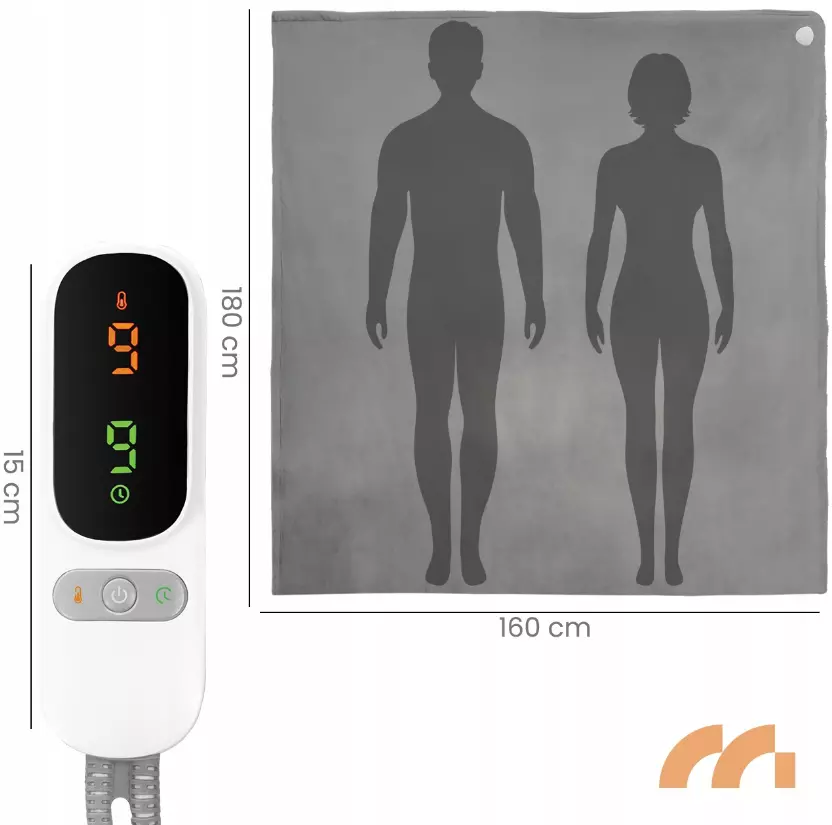 Встроенный пульт дистанционного управления с дисплеем делает управление одеялом очень простым. Все настройки находятся под рукой, а легко читаемый дисплей информирует вас о текущей температуре и времени нагрева. Благодаря длинному кабелю 2,4 м вы можете использовать одеяло даже в больших помещениях, не приближаясь к электрической розетке.