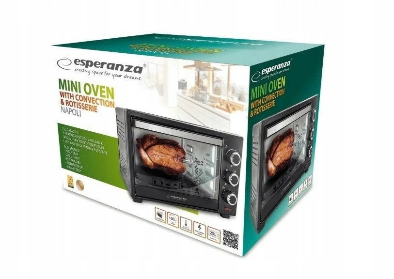 - Конвекционная мини-печь Esperanza NAPOLI поможет вам легко приготовить вкусную пиццу, запеканку, картофель фри или испечь мясо или рыбу.