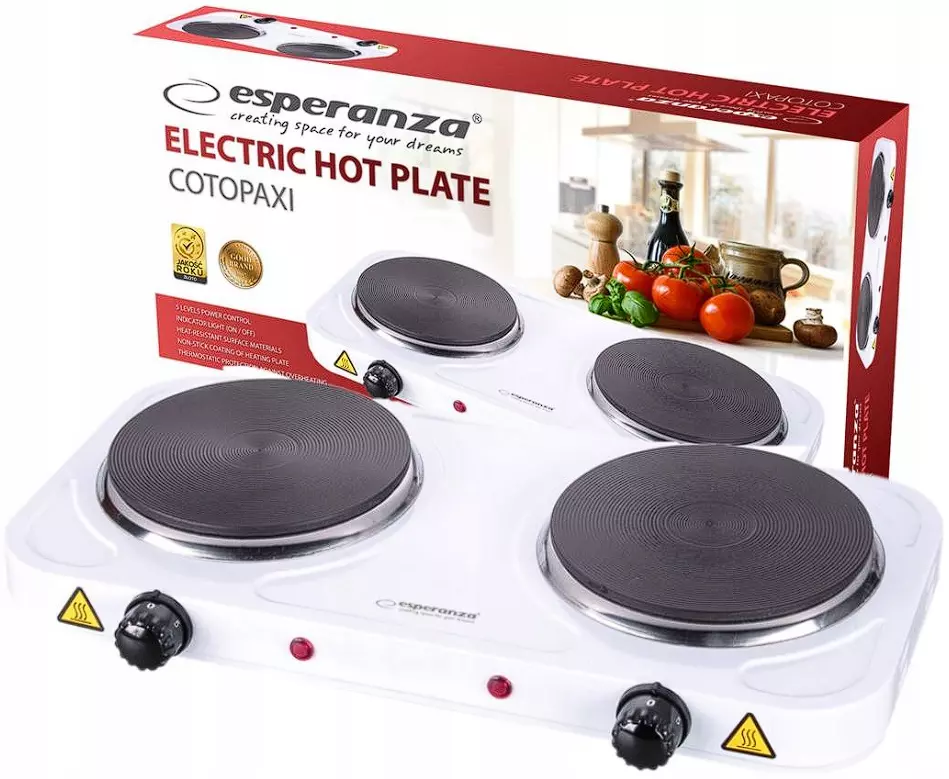Электрические плиты Esperanza COTOPAXI это эффективное, современное оборудование производителя EDC Poterek Sp. Jawna, а бренд Esperanza была награждена золотой медалью " Качество Года и золотым лавром клиента в Польше.