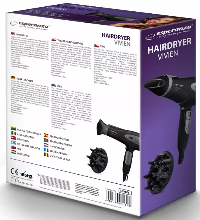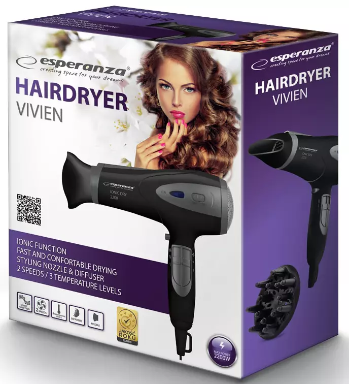 - Фен Esperanza VIVIEN – это устройство, которое идеально подойдет для дома каждому человеку, ценящему время и ухоженный вид.