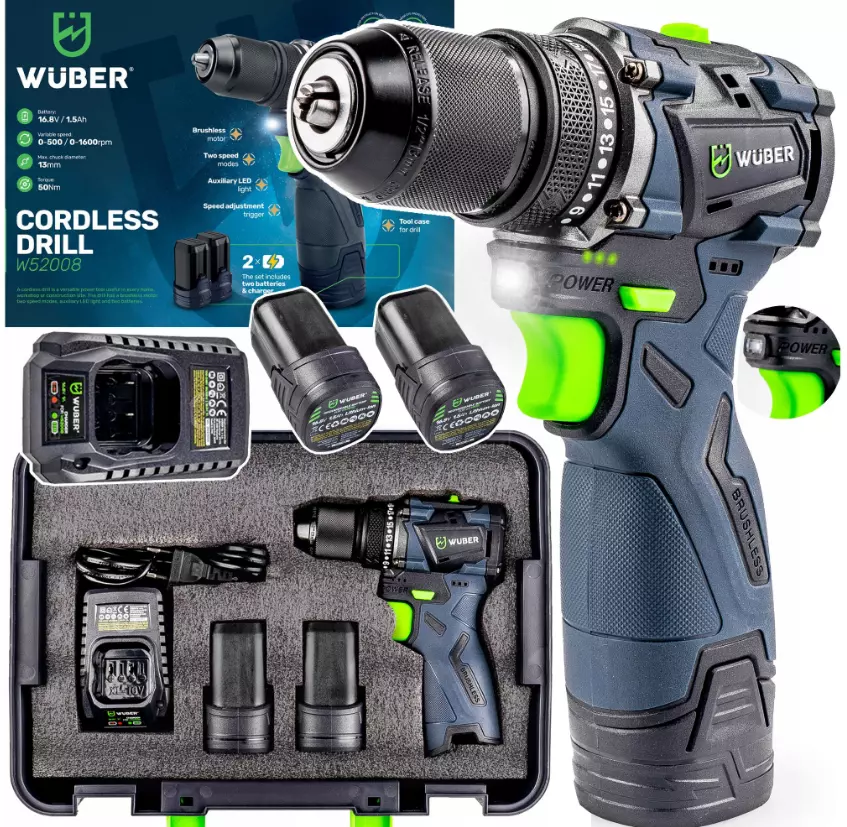 ✔️ Дрель-шуруповерт работает от мощных аккумуляторов.