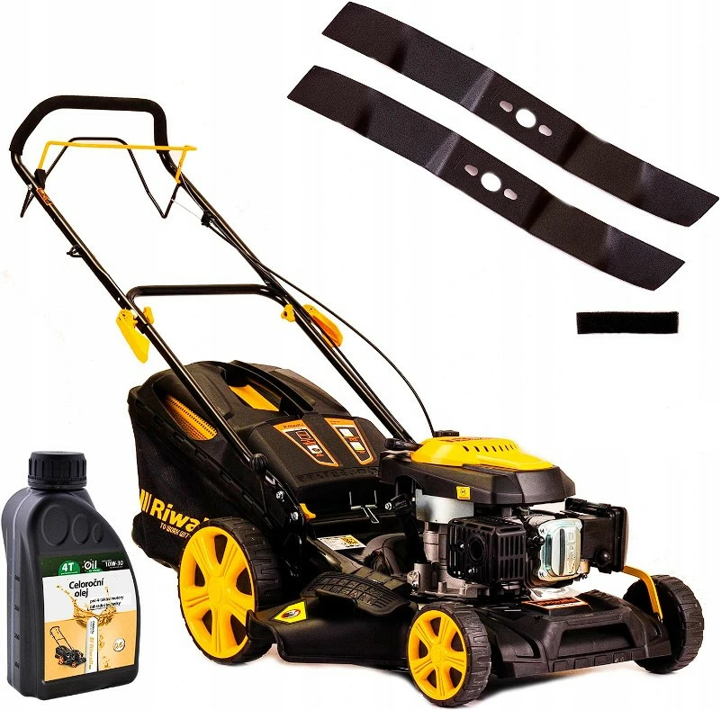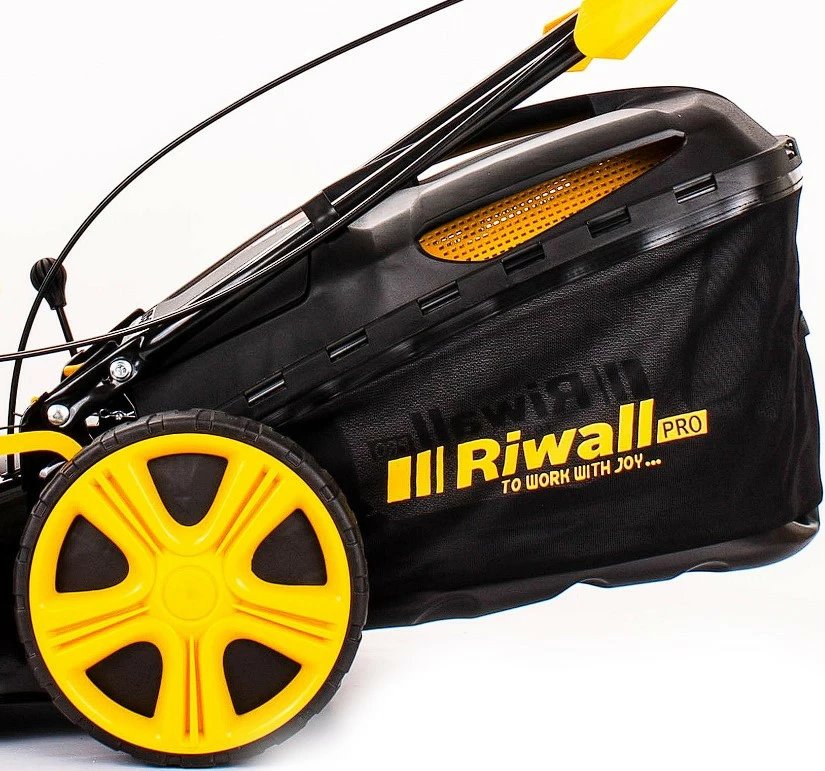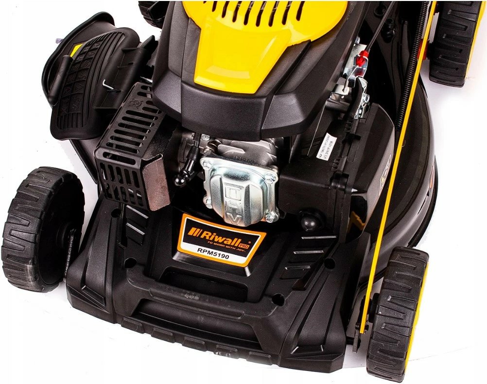Газонокосилка бензиновая чешского бренда с приводом RIWALL 5190 9in1 ECO с новым обновленным внешним видом и дополнительным специальным бампером, изготовленным из очень твердого и прочного АБС-пластика.