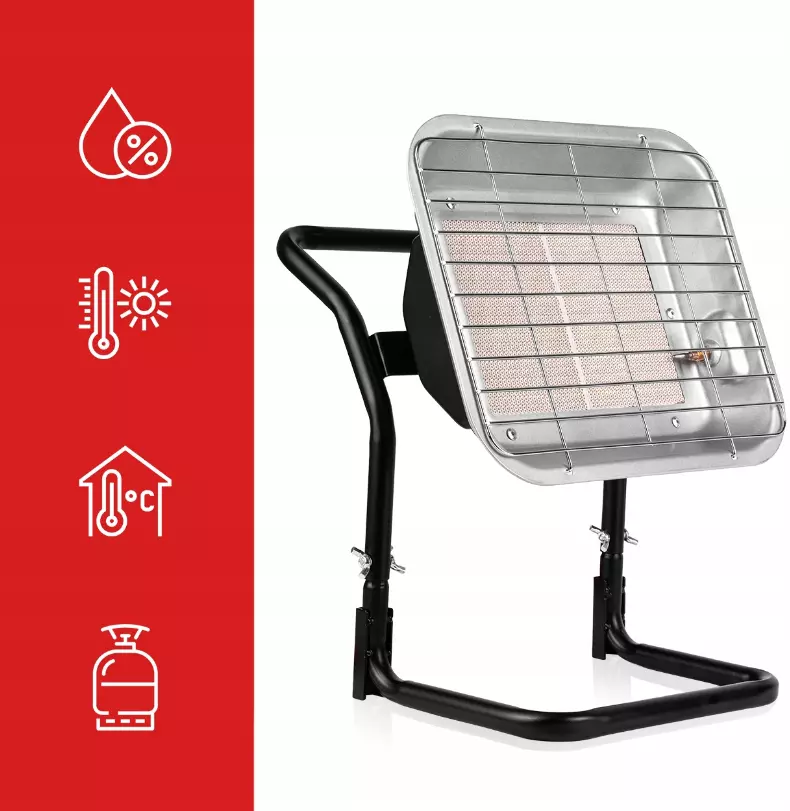 Газовый обогреватель использует керамическую горелку для получения тепла, в зависимости от температуры в помещении мы можем регулировать поверхность нагрева, чтобы обогреть помещение как можно лучше.