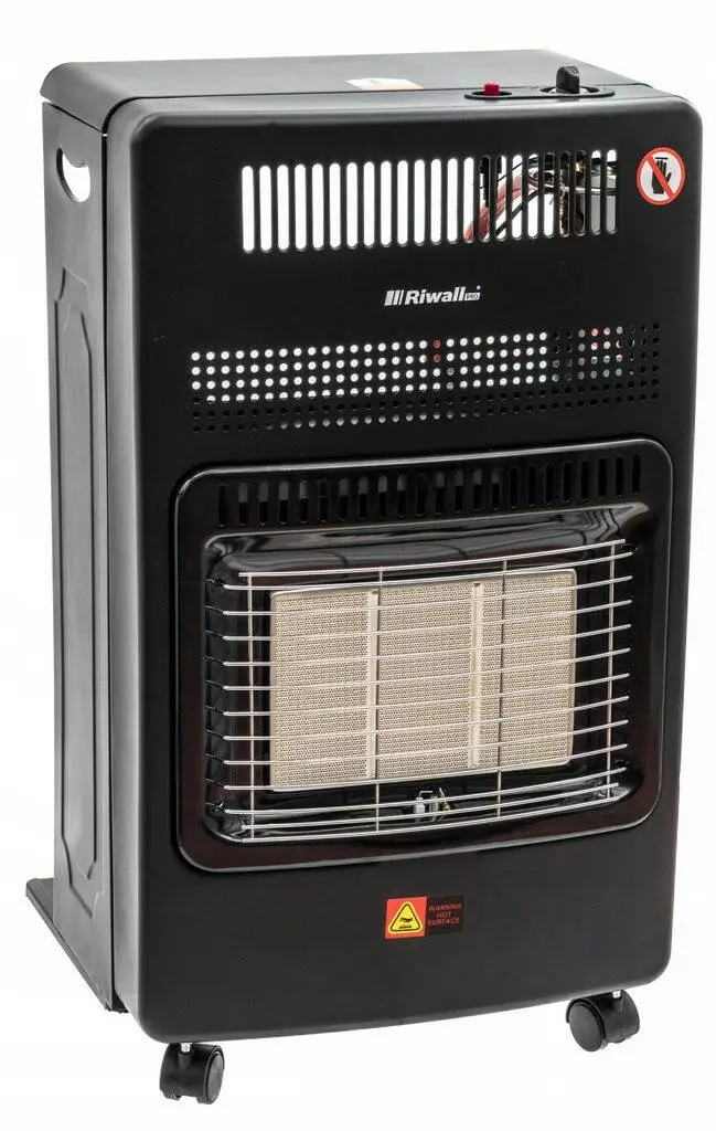 В газовом обогревателе Riwall 4200W газ сжигается на керамических пластинах, которые дополнительно нагреваются для излучения дополнительного тепла.