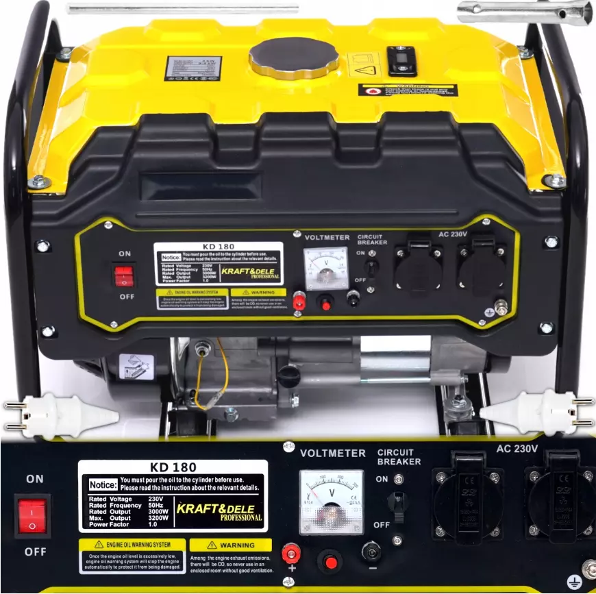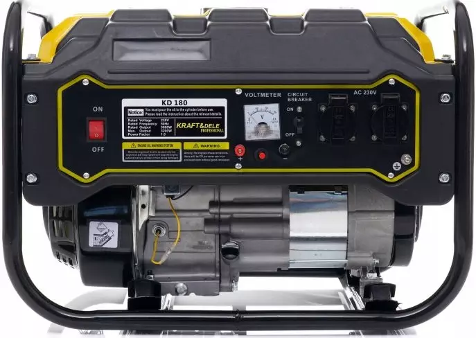 Портативная однофазная генераторная установка Kraft&Dele KD180 предназначена для выработки переменного тока напряжением 230 В с помощью 4-тактного двигателя внутреннего сгорания OHV.