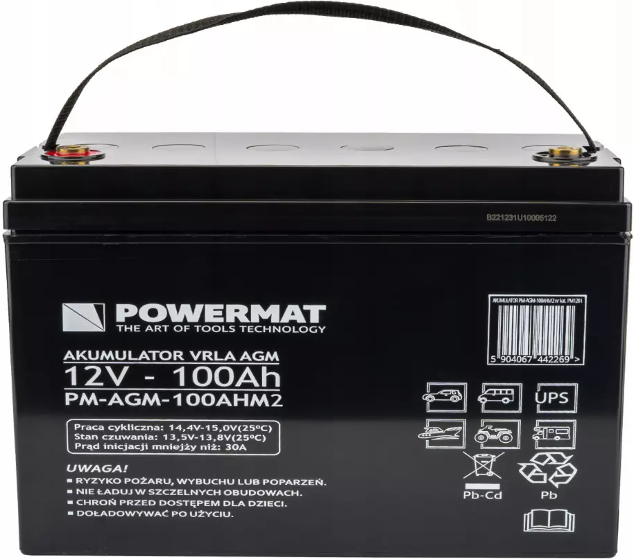 Свинцово-кислотный аккумулятор POWERMAT VRLA AGM C20/12V/100Ah