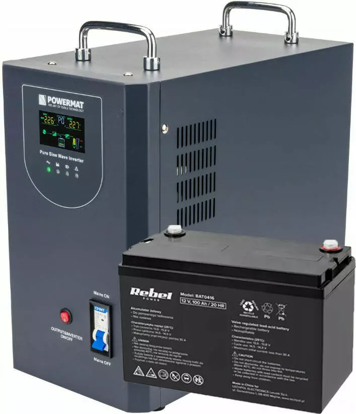 ИБП Powermat 2000ВА 1600Вт чистая синусоида + аккумулятор Powermat 12В 100Ач (Польша)
