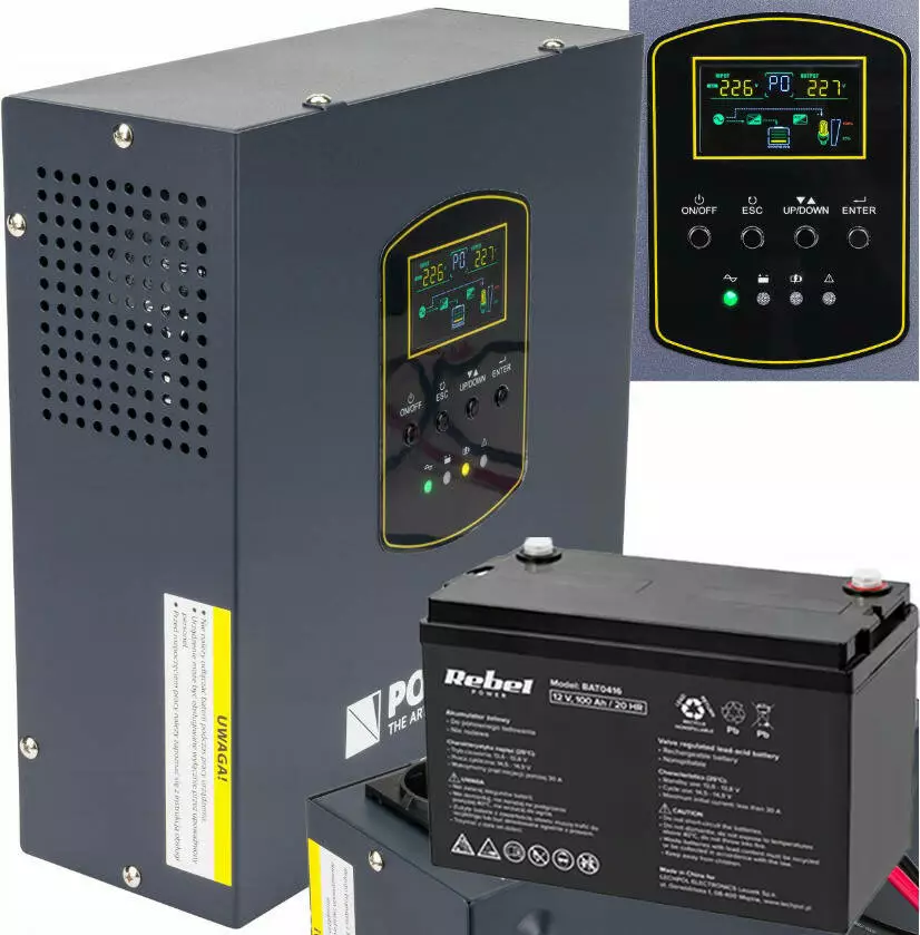 - Режим ИБП: питание от сети во время зарядки аккумулятора, переход на питание от аккумулятора в случае нестабильного напряжения или полной потери сетевого питания.