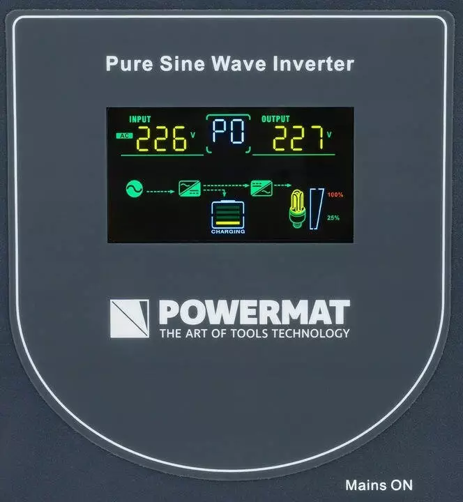 - Режим ИБП: питание от сети во время зарядки аккумулятора, переход на питание от аккумулятора в случае нестабильного напряжения или полной потери сетевого питания.