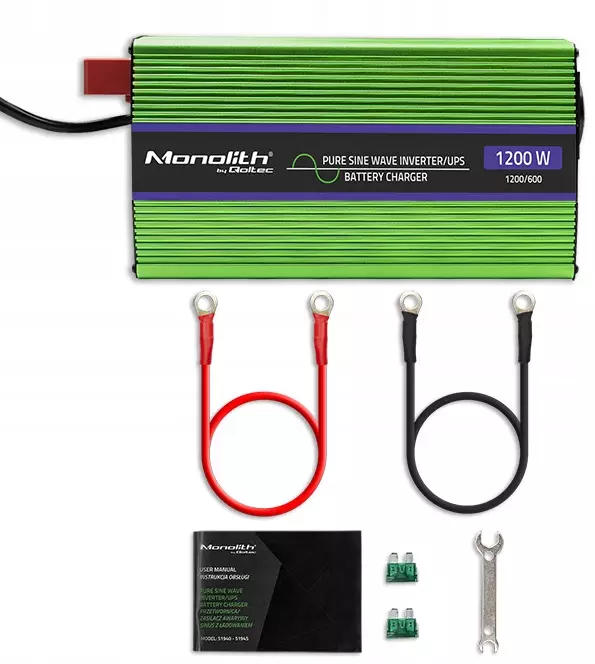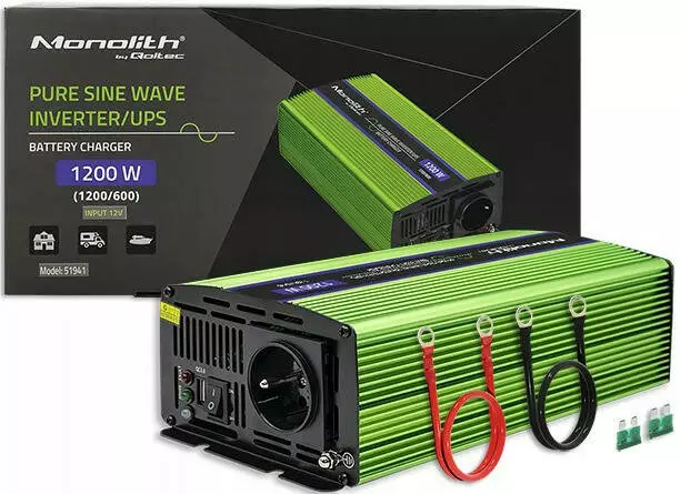 Преобразователь напряжения Qoltec Monolith | зарядка аккумуляторов | ИБП | 600 Вт | 1200 Вт | 12 В - 230 В | чистый синус.