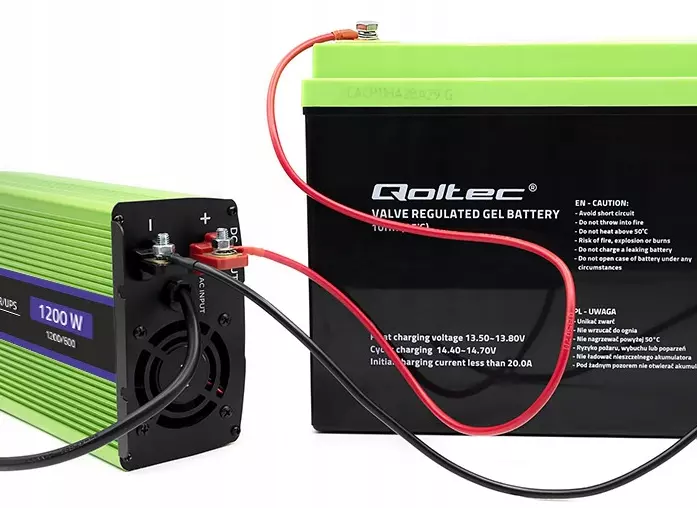 Инвертор 12 230 с чистой синусоидой и зарядным устройством 1200Вт Qoltec (Польша)