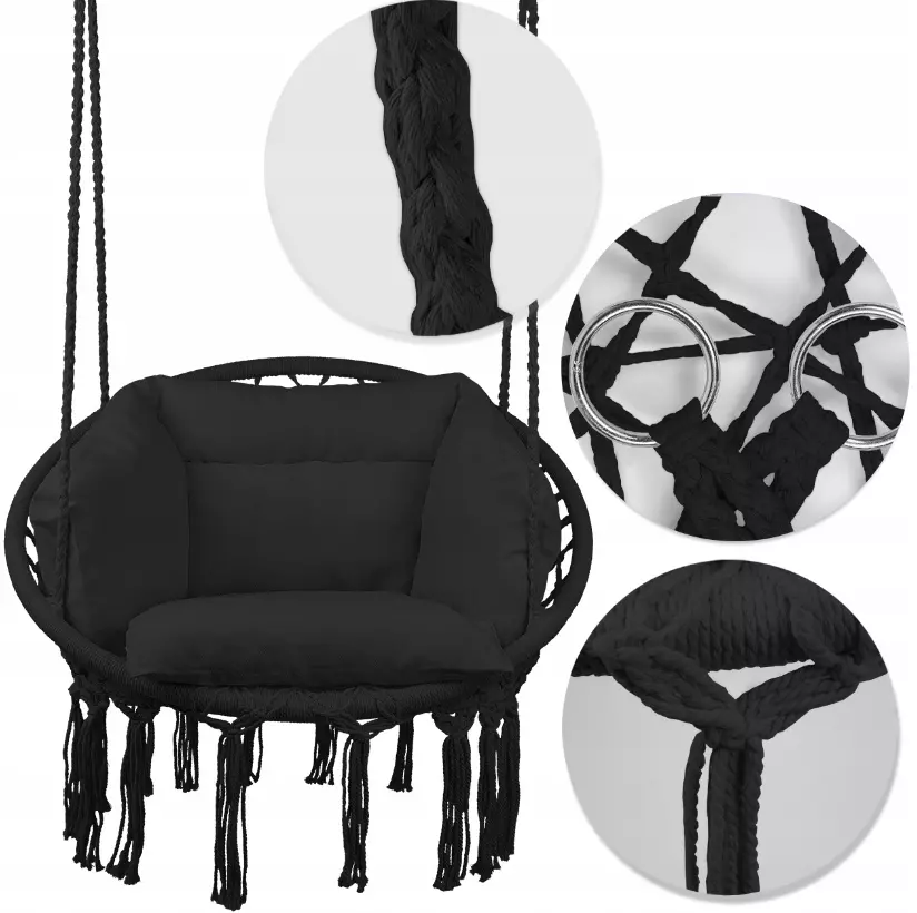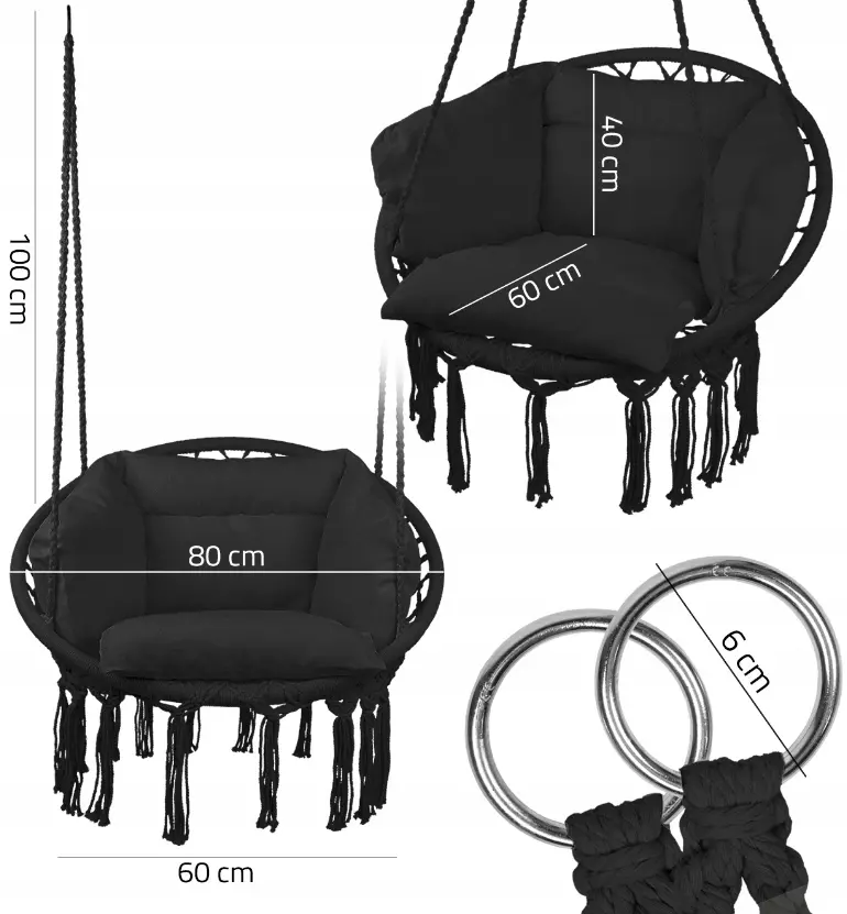 Подвесное кресло предлагает возможность создать свой собственный уголок отдыха, полный красоты, комфорта и вдохновения, приглашая вас создать незабываемые моменты в окружении природы и эстетического дизайна.