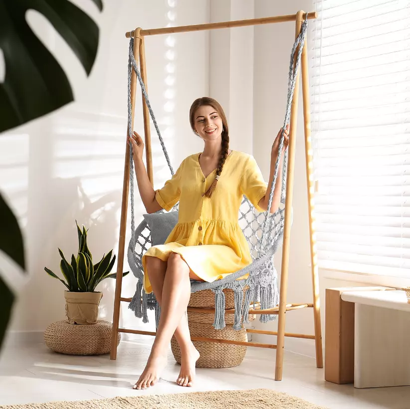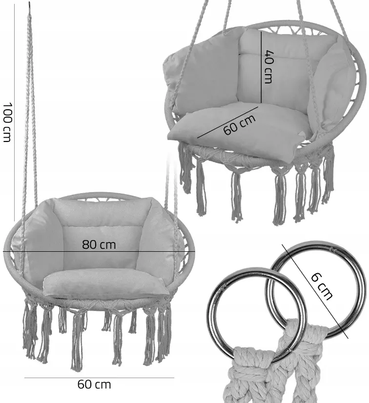 Подвесное кресло дает возможность создать свое собственное убежище, полное красоты, комфорта и вдохновения, приглашая вас создать незабываемые моменты в окружении природы и эстетического дизайна.