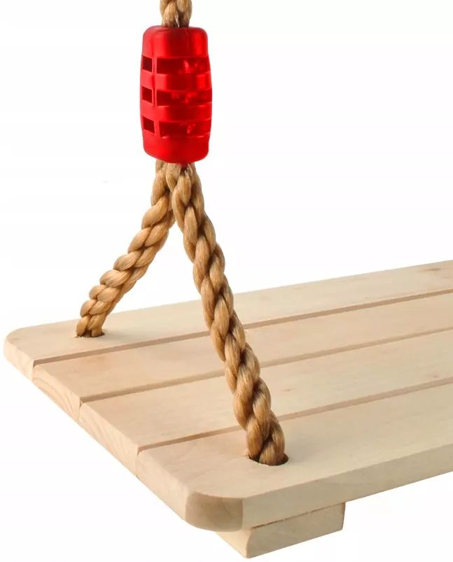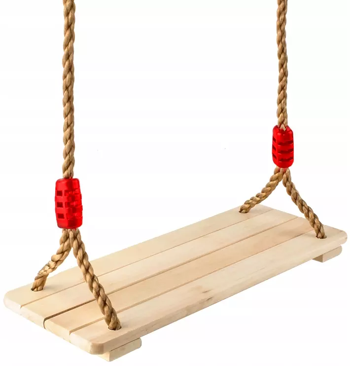 Прочные веревки и металлические прочные крепления гарантируют безопасность ребенка и гарантируют, что качели не сломаются. Светлый цвет древесины приятен для глаз, привлекателен и прекрасно сочетается с темно-коричневым цветом канатов.