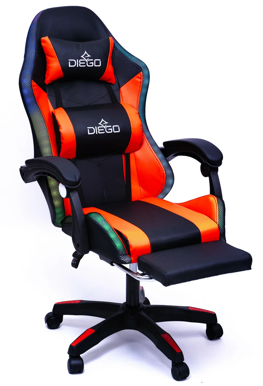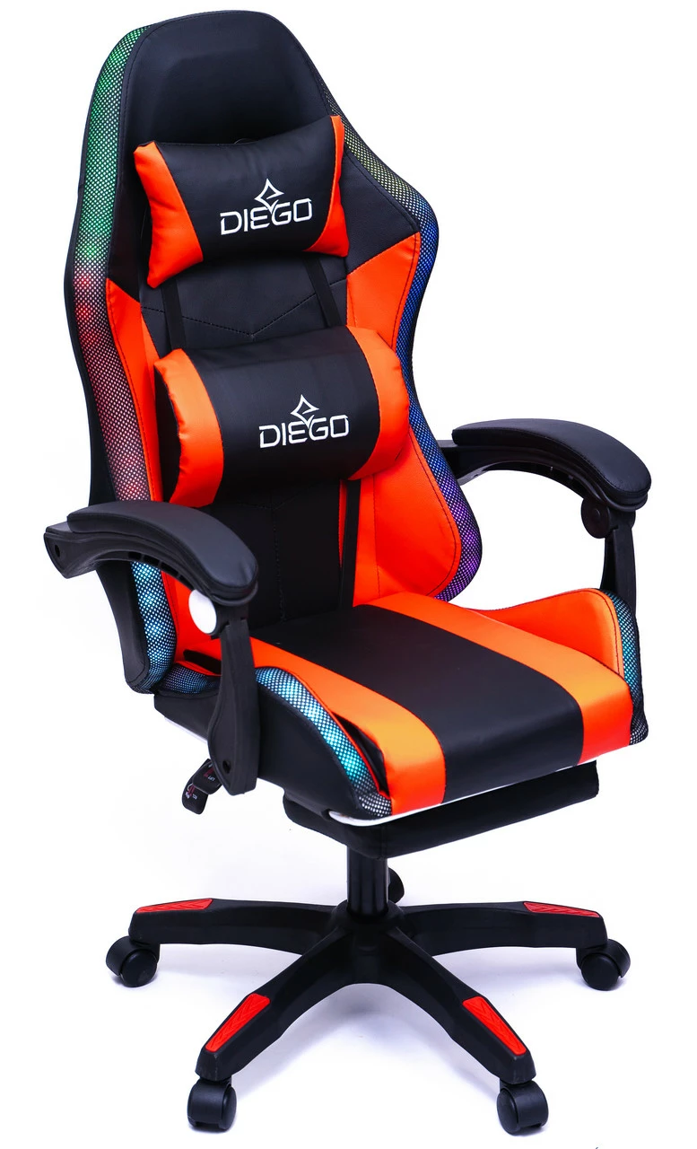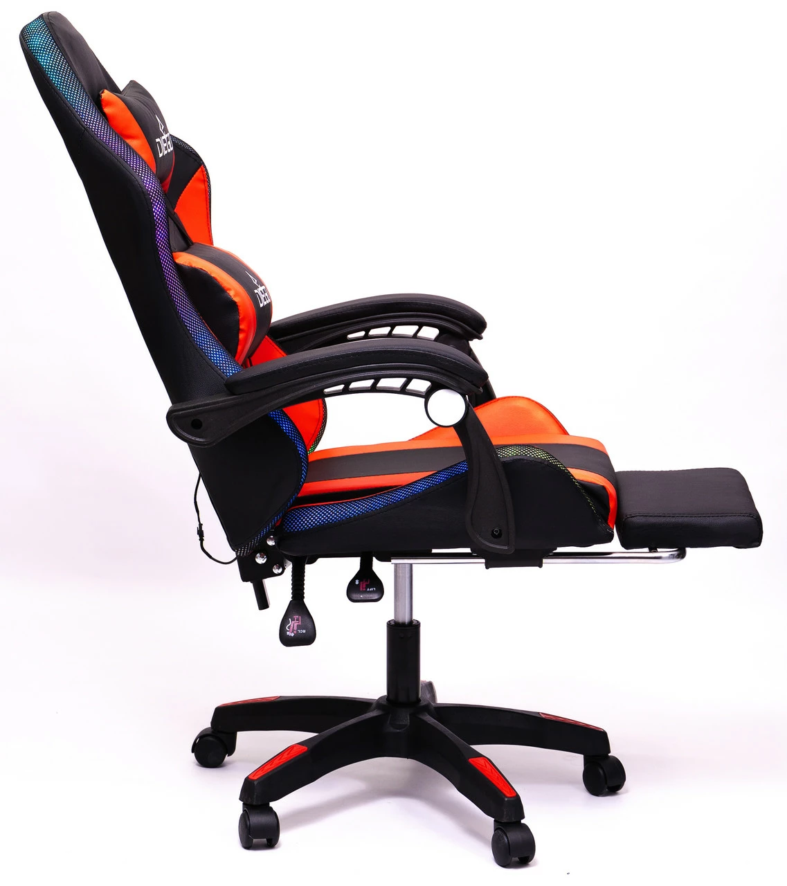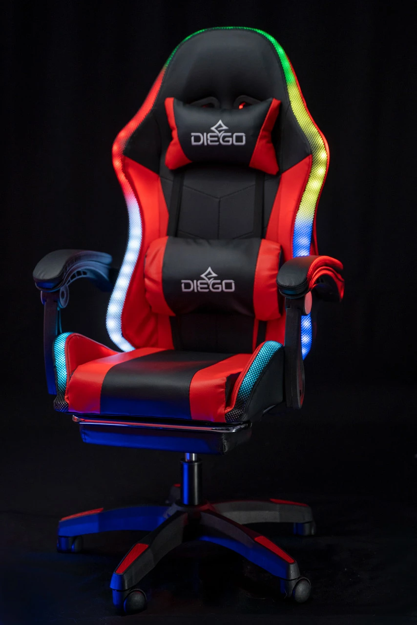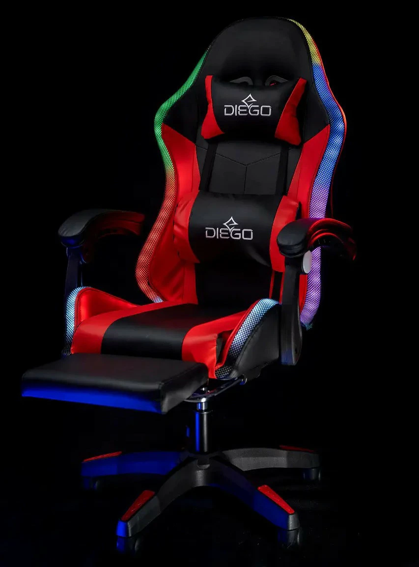 Кресло геймерское DIEGO с подставкою для ног и подсветкою + массаж черно-красное
