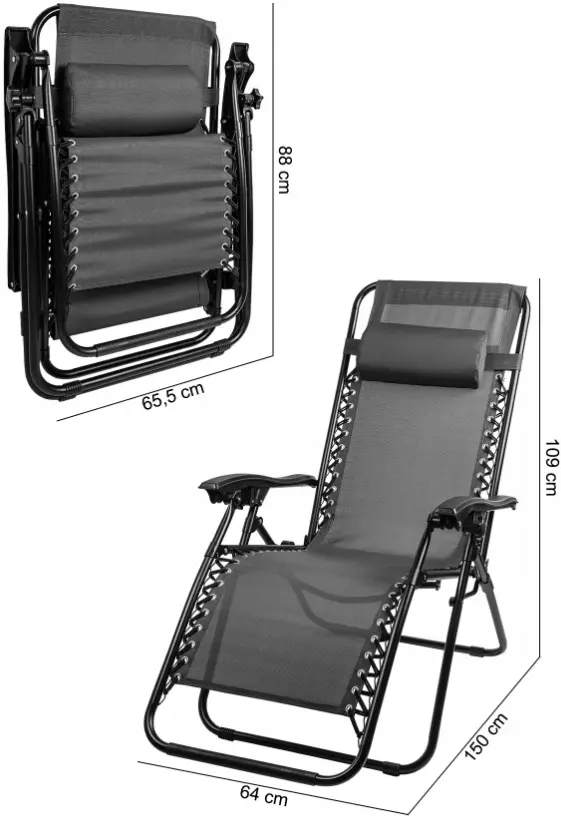 - Размеры шезлонга в сложенном виде: 88 x 65,5 см