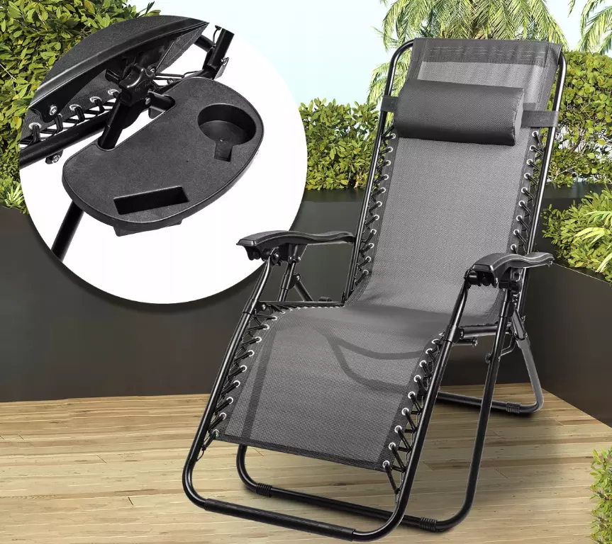 Складной шезлонг PARADISE ZeroGravity D.GRAY + подстаканник