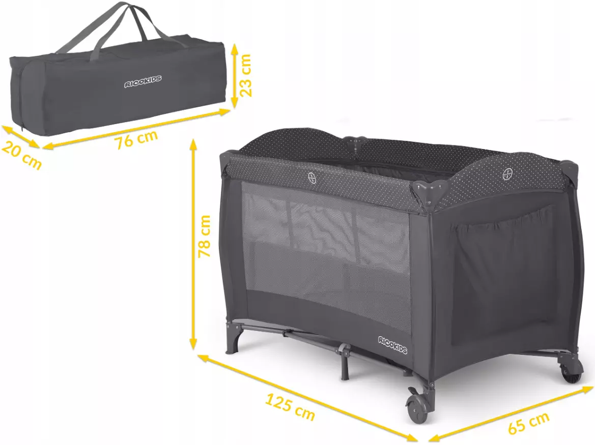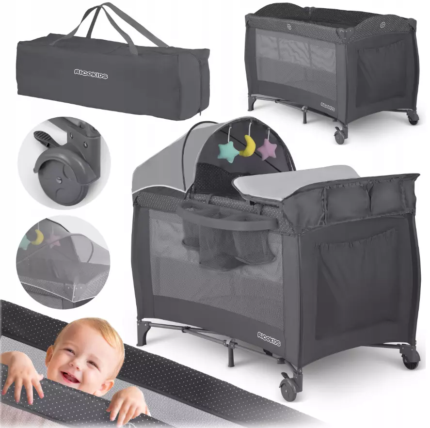 Кроватка-манеж Rickokids 65x125см темно-серый (Польша)