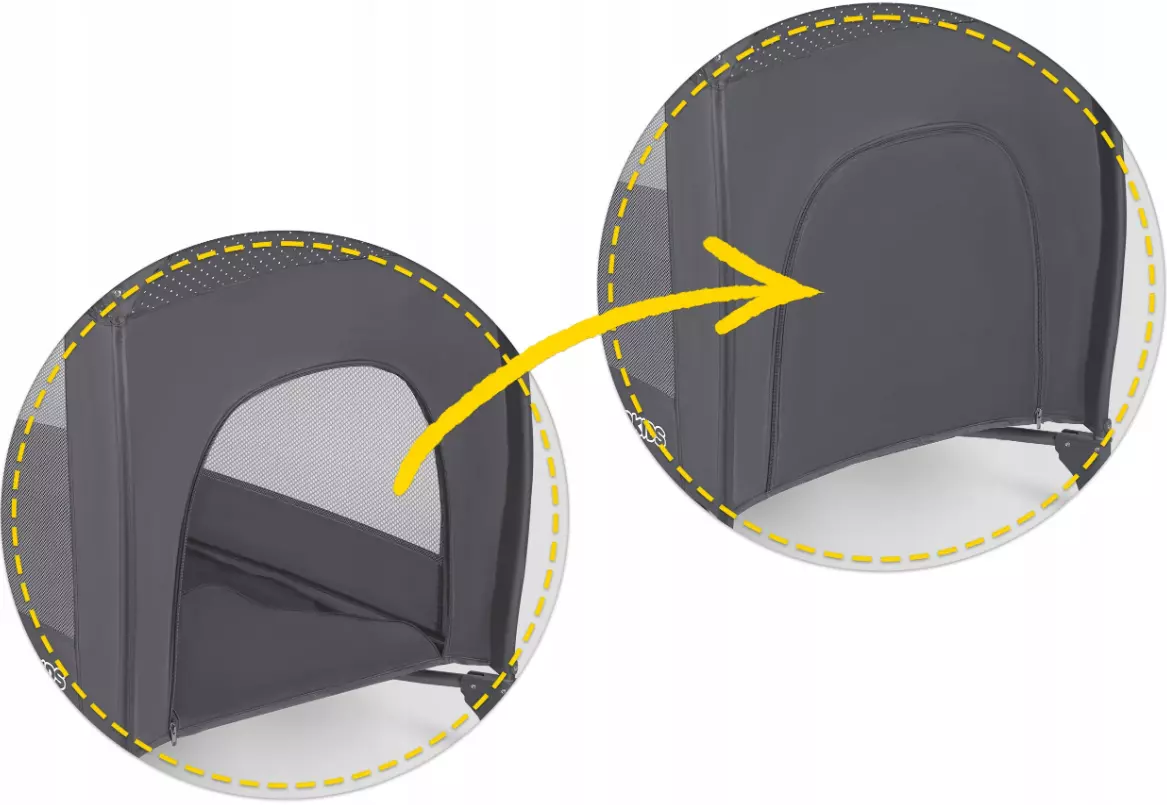 Съемный боковой вход недоступен для маленьких детей благодаря молнии, застегивающейся снаружи. Более старшие, крепкие и подвижные дети могут самостоятельно, удобно и безопасно забираться в кроватку и выходить из нее - они не будут пытаться перелезть через верхний край.