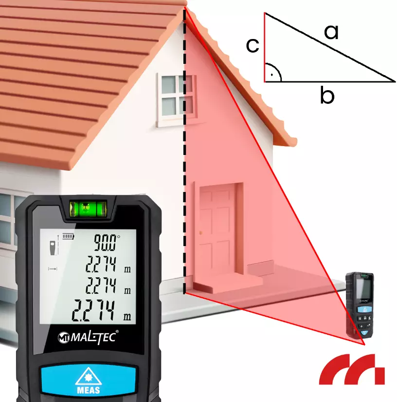 Одной из самых продвинутых функций лазерного дальномера MasterMeter является функция «Пифагор». Она позволяет проводить косвенные измерения, например, высоту здания или расстояние до точки, к которой нет прямого доступа. Функция Пифагора доступна в двух- и трехточечном вариантах и позволяет точно рассчитать размеры, избавляя от необходимости использовать лестницы или другие инструменты.