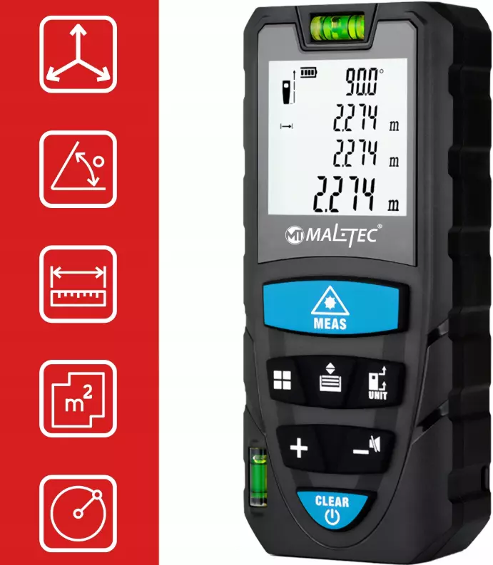 Лазерный дальномер MasterMeter - это революционный измерительный инструмент, который позволяет точно и быстро измерять расстояния, площади и объемы! Идеально подходит для использования в строительстве, архитектуре, а также для повседневных ремонтных и монтажных работ. Его главное преимущество - функция автоматического нивелирования и возможность косвенных измерений с помощью функции Пифагора, которая обеспечивает точные результаты даже в труднодоступных местах.