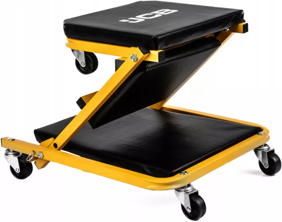 Тележка для мастерской JCB - это чрезвычайно универсальный инструмент, который можно использовать как в качестве кушетки, так и в качестве табурета.