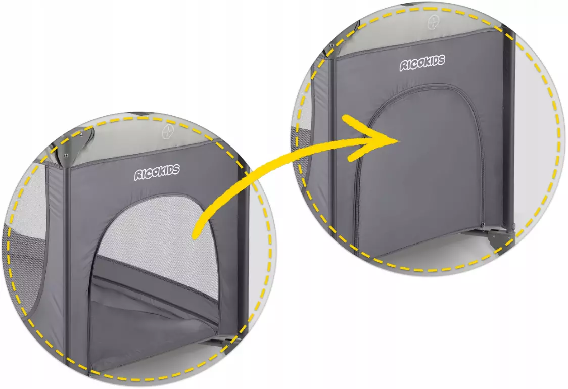 Съемный боковой вход недоступен для маленьких детей благодаря молнии, застегивающейся снаружи. Более старшие, крепкие и подвижные дети могут самостоятельно, удобно и безопасно забираться в кроватку и выходить из нее - они не будут пытаться перелезть через верхний край.