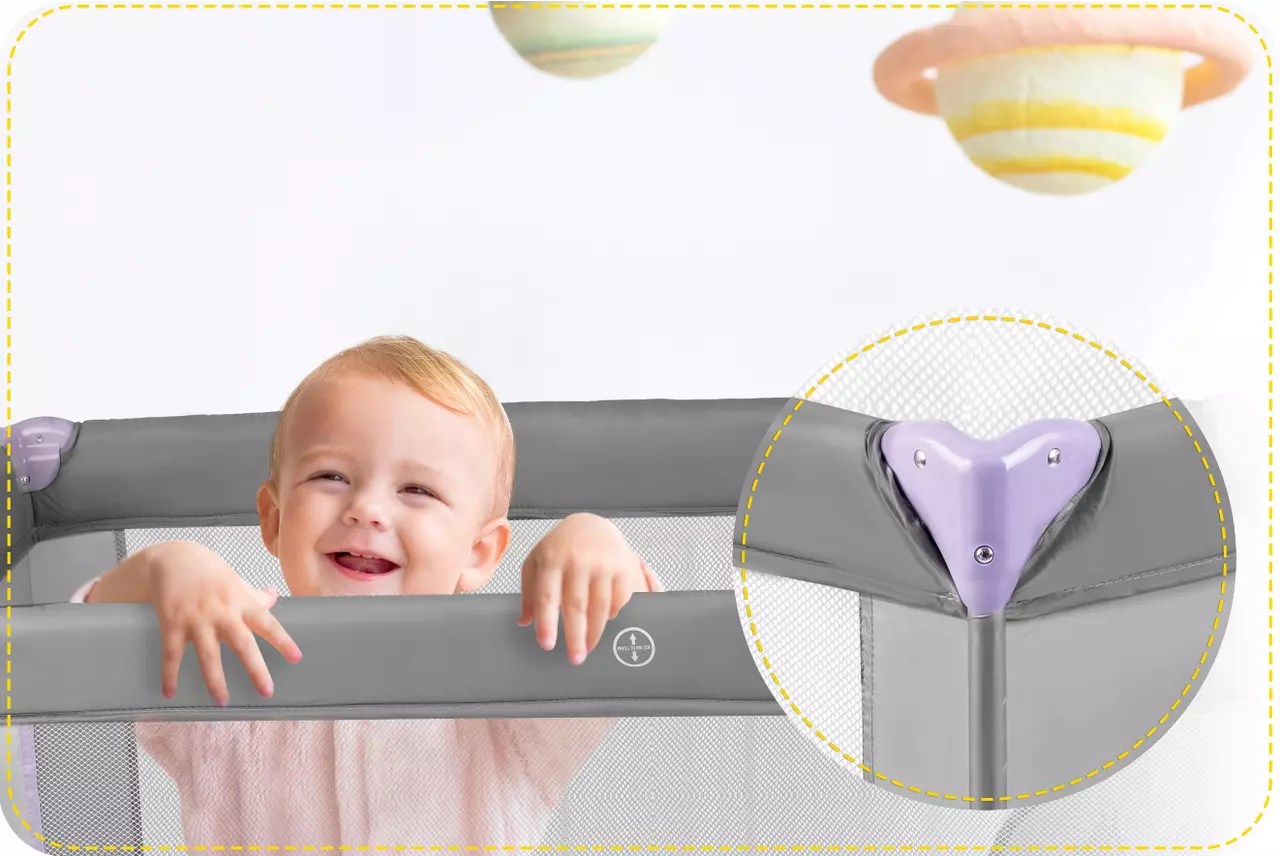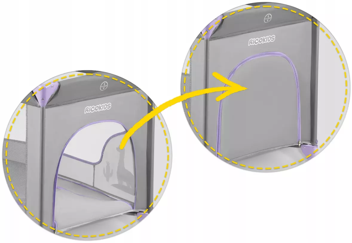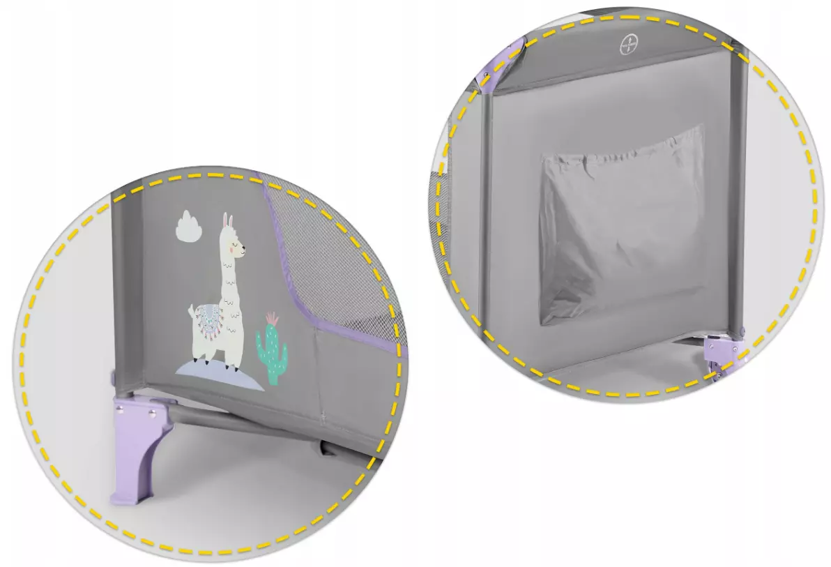 Съемный боковой вход недоступен для маленьких детей благодаря молнии, застегивающейся снаружи. Более старшие, крепкие и подвижные дети могут самостоятельно, удобно и безопасно забираться в кроватку и выходить из нее - они не будут пытаться перелезть через верхний край.