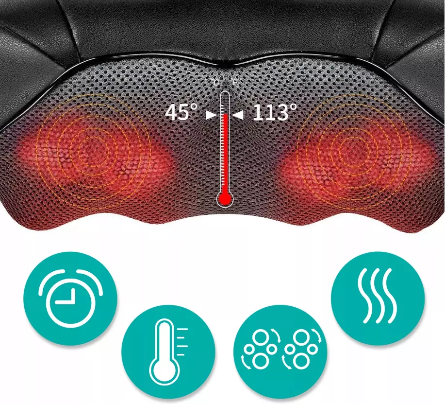 Функция легкого подогрева усиливает ощущение комфорта и расслабления. Подаваемое тепло способствует массажу. Прибор расслабляет напряженные мышцы, уменьшает боль и улучшает кровообращение.