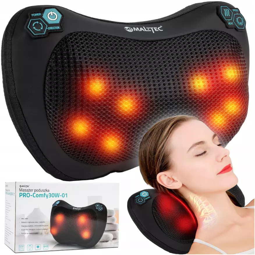 Кроме того, бывает сложно самостоятельно добраться до труднодоступных мест и сделать массаж спины или шеи. Именно здесь на помощь приходит массажер-подушка MalTec, который делает это легко и точно.