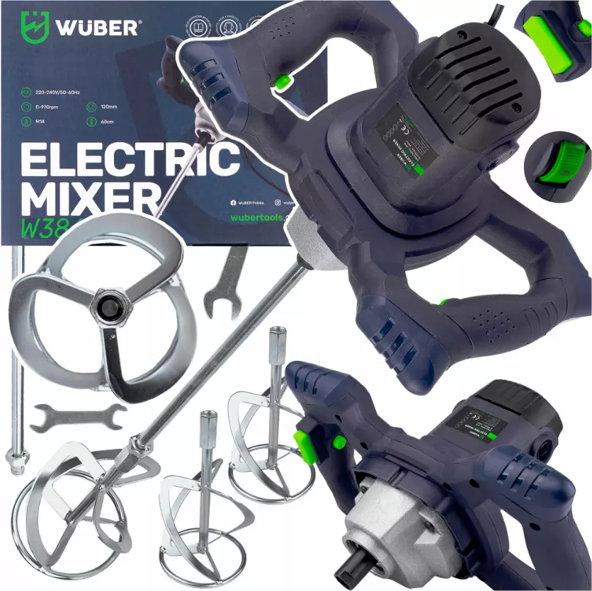 Миксер строительный Wuber 2600Вт 120мм + 2 дополнительных смесителя (Польша)